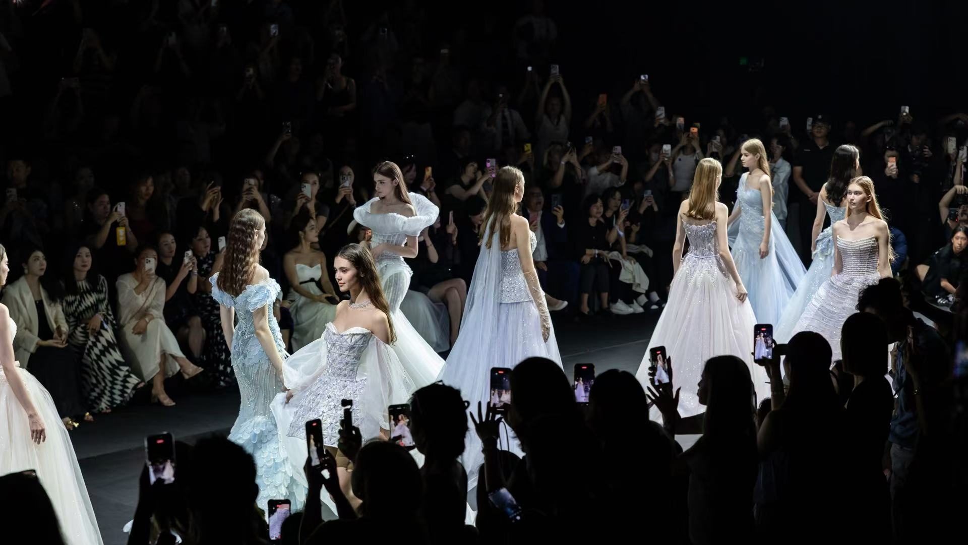依托三亚滨海资源,本届时尚周打造沙滩、草坪、室内三大主题秀场,5天内将上演22场高定大秀。其中,蜈支洲岛与三亚保利瑰丽酒店联合打造的 “海上飞艇时尚时刻” 成为开幕焦点,模特身着2025年流行趋势的婚纱搭乘飞艇亮相海面,以椰风海浪为景,打造沉浸式视觉盛宴。