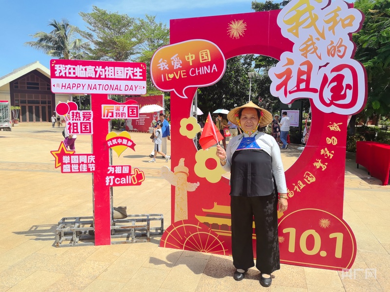 10月1日,一位阿婆在海南解放公园“打卡”(央广网记者 付美斌 摄)