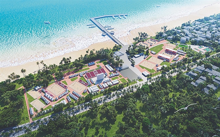这种“临时化”设计并不简单,已完工的沙滩排球、沙滩手球、攀岩场馆,在赛事照明、供水排水等专业配套上均达到国际赛事标准,既避免了赛后闲置的资源浪费,又守护了三亚滨海生态的完整性。