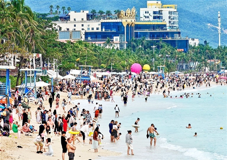 凭借温暖如春的独特气候,三亚成为冬季理想的“避寒”胜地,尽显“天然温室”的魅力。碧海蓝天之下,踏浪、戏水、散步的游客络绎不绝,构成一幅悠闲动人的滨海旅游图景。(记者 刘琪成 摄)