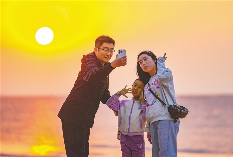 1月3日,游客在海口秀英区荣山寮村拍照打卡,在落日余晖中定格假期美好。海南日报全媒体记者 陈元才 摄