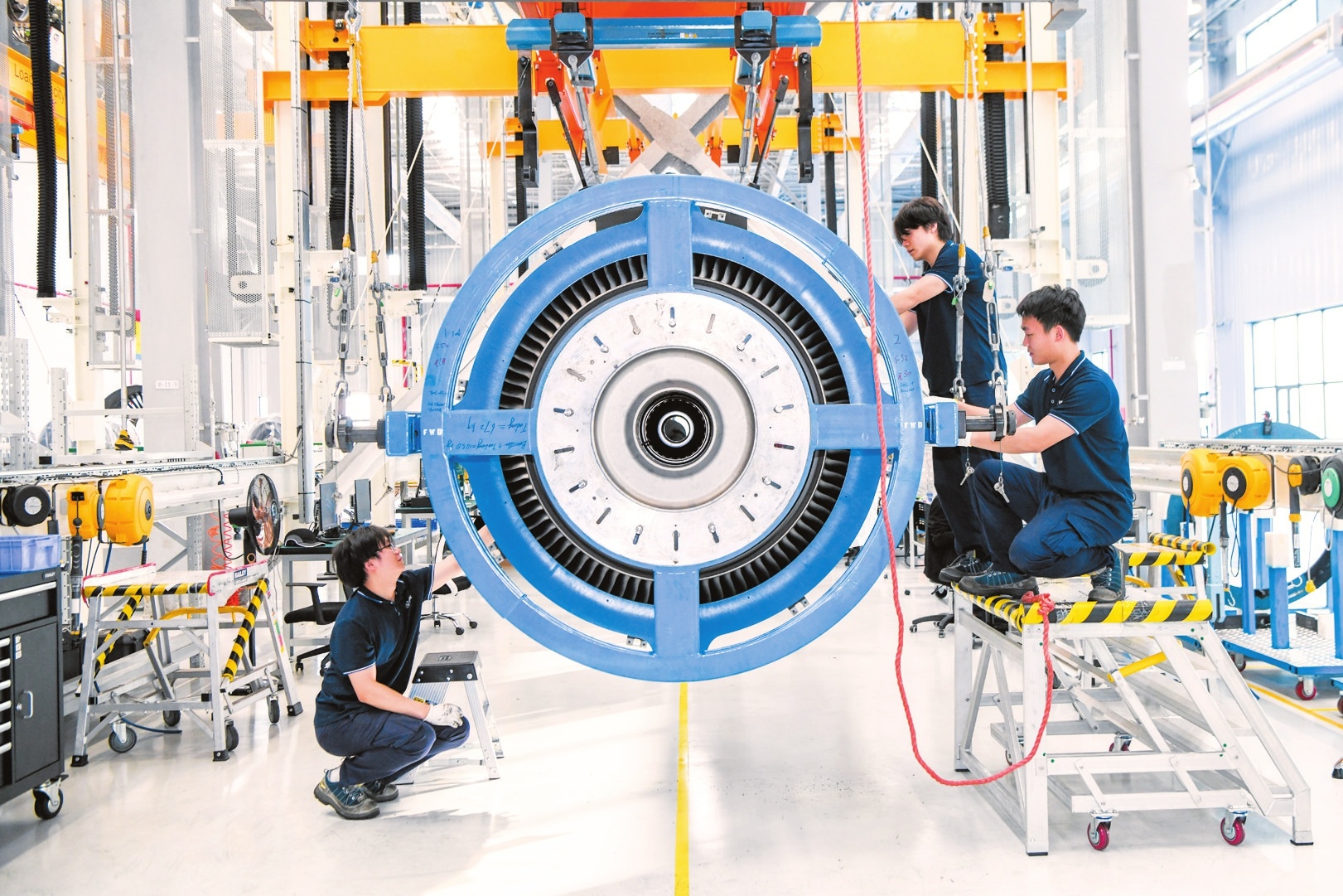 近日,在位于海口空港综保区的海口美兰空港吉耐斯航空发动机维修工程有限公司,工作人员正在检修航空发动机。记者 苏弼坤 实习生 陈新锐 摄