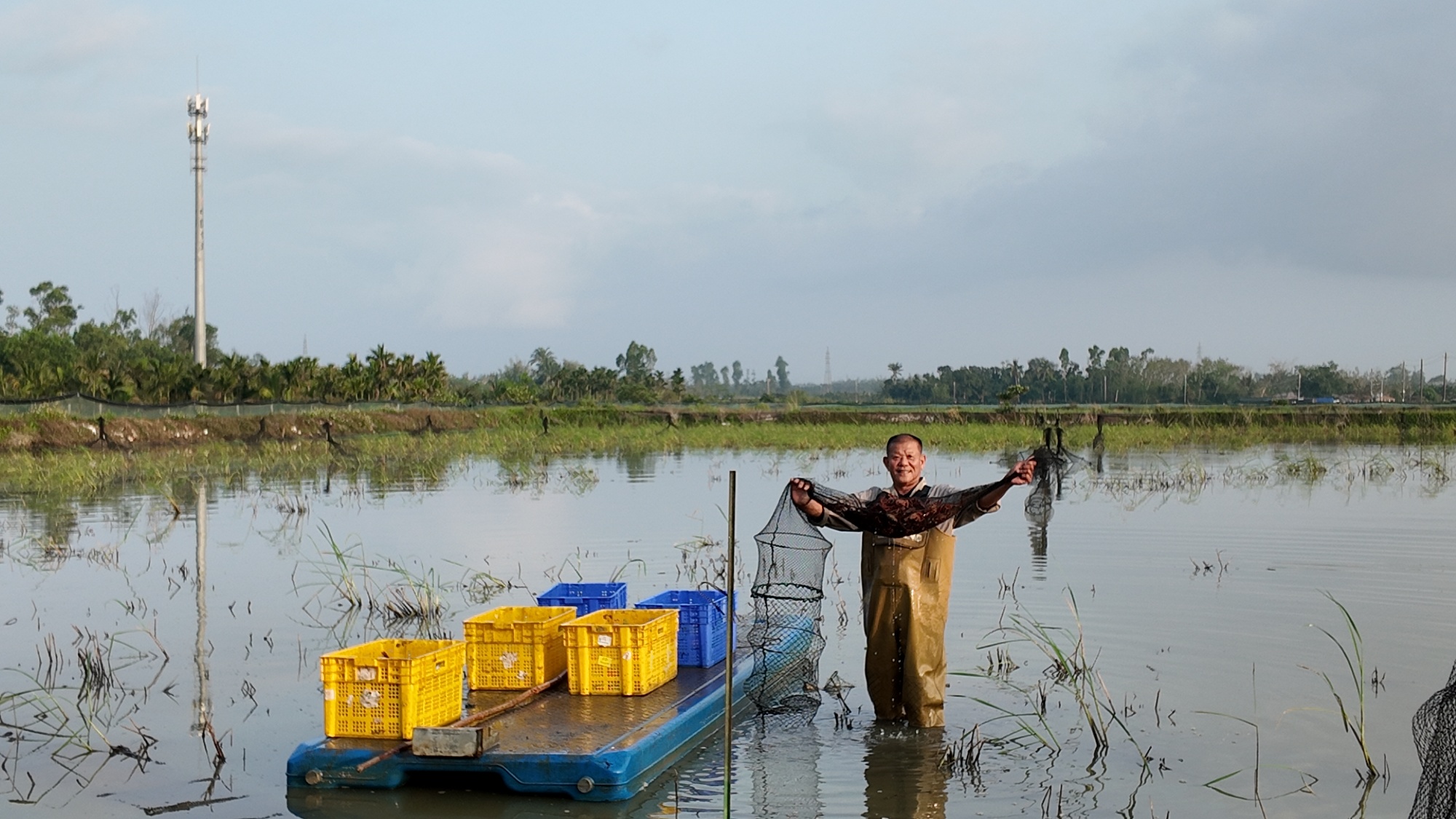 养殖户正在捕捞虾(央广网发 受访者供图)