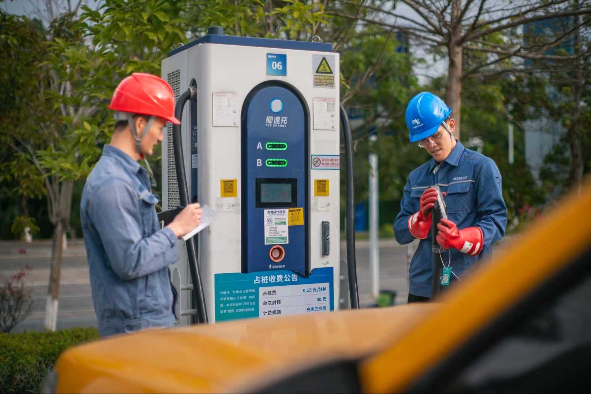 海南电网五指山供电局工作人员正在检查辖区文旅景点的充电桩使用情况。吴翔 摄