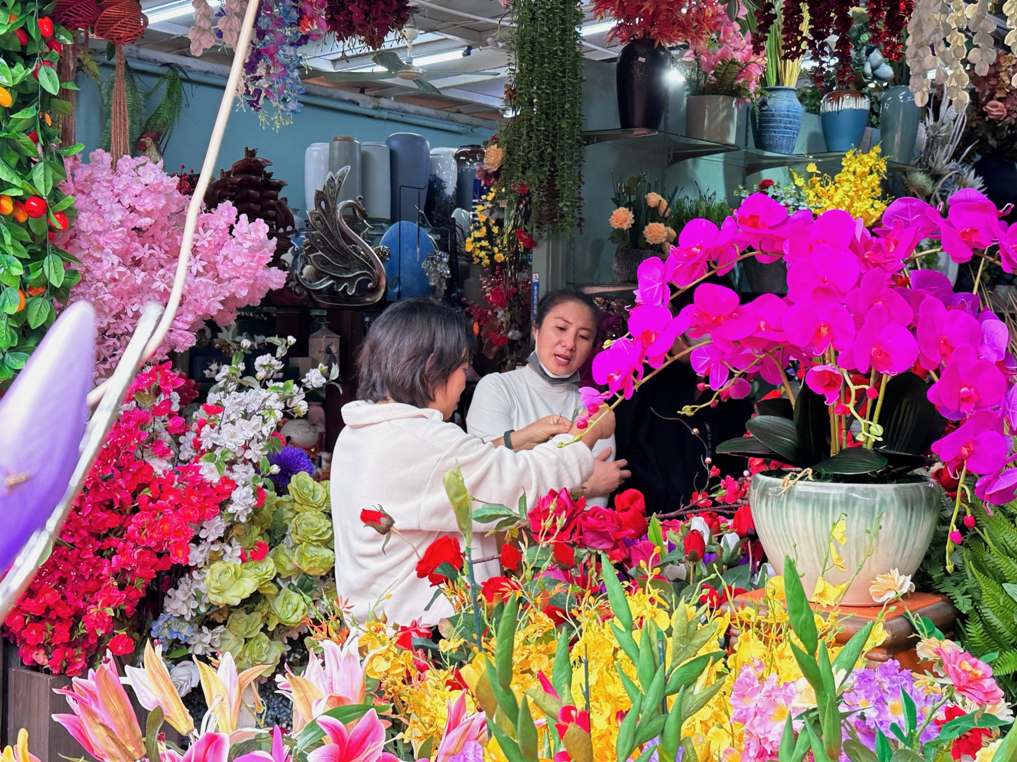市民挑选花卉绿植(央广网记者 索迪 摄)