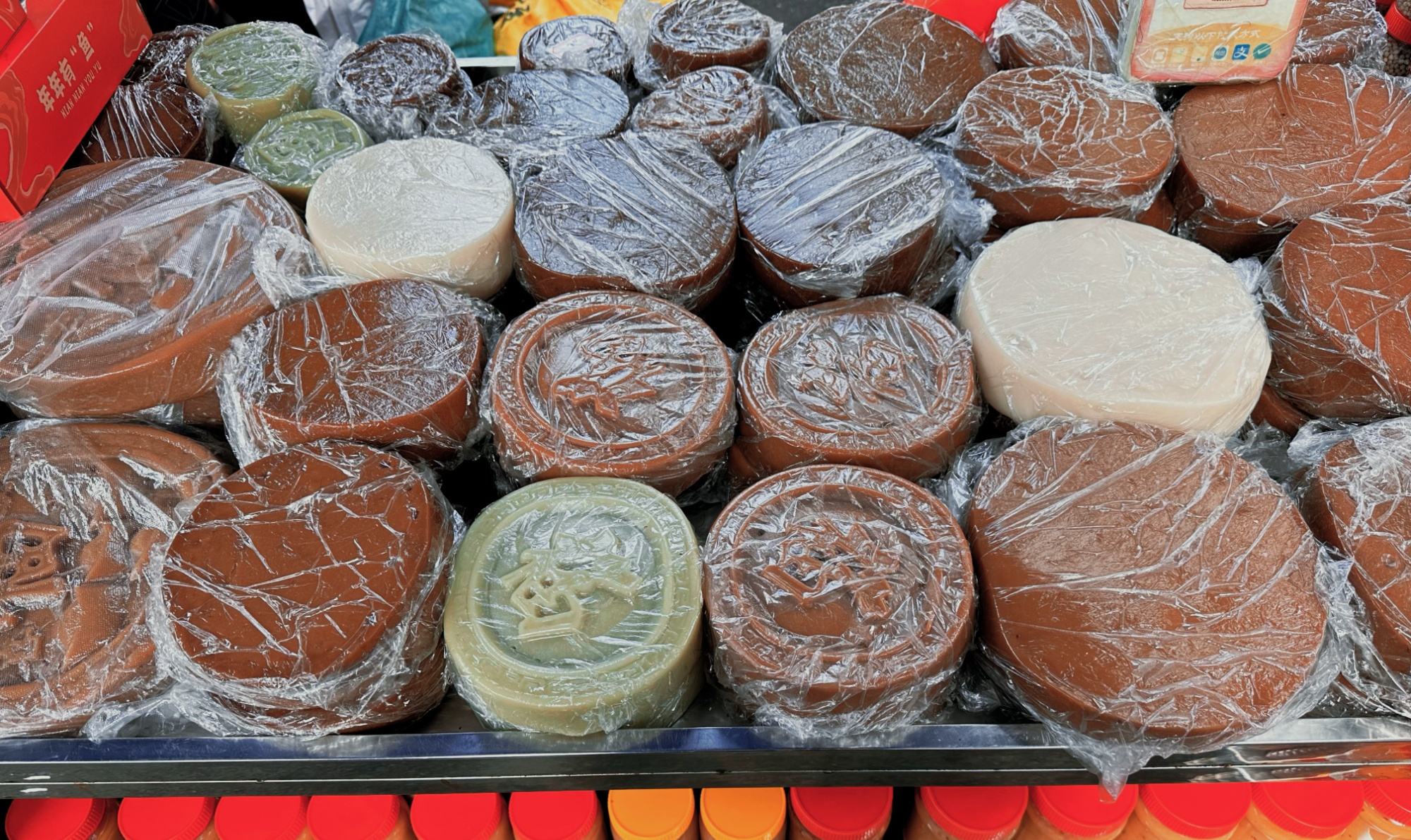 “我们过年一般从腊月二十八、二十九就开始准备制作年糕,从大年三十到元宵节,都有吃红糖年糕的习惯。”已经在海口东门市场卖了三十几年年糕的兰姐回忆说,自己从小就看着外婆做年糕,后来这门手艺传到了自己这里。红糖年糕在海南已经有两百多年的历史了,不同的市县红糖年糕的做法也不尽相同,但这种风俗习惯却已在海南人心中扎了根。作屋升梁、男娶女嫁、生子弥月,是家家户户必备的传统美食。此外,蛋散、京果、糖贡、饺子酥、薏粑等等,这些都是海南人对年的味觉记忆。