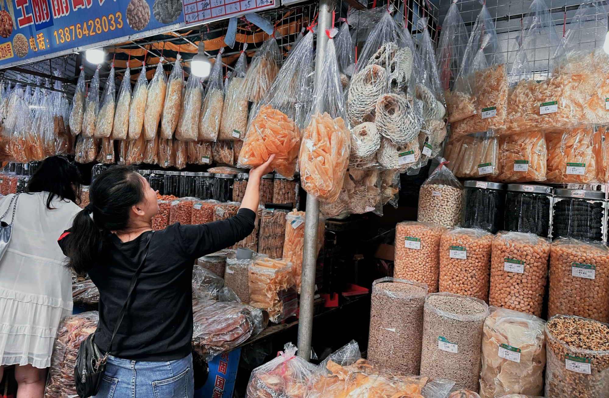 海口东门市场售卖的海鲜干货(央广网记者 索迪 摄)