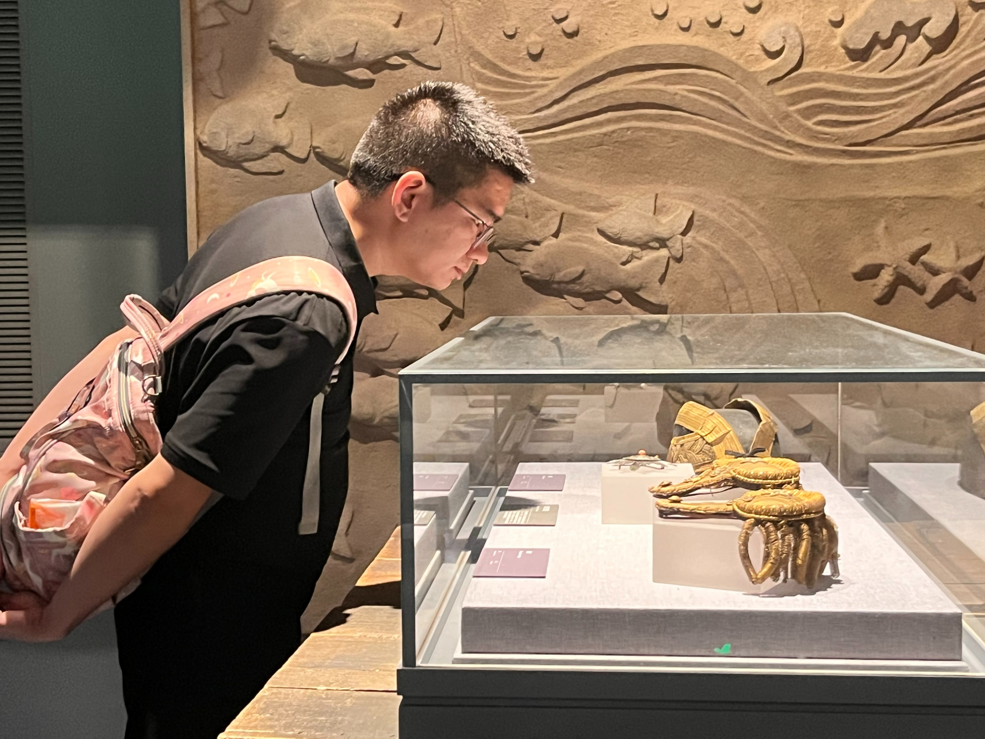 市民仔细观赏文物(央广网记者 蔡文娟 摄)