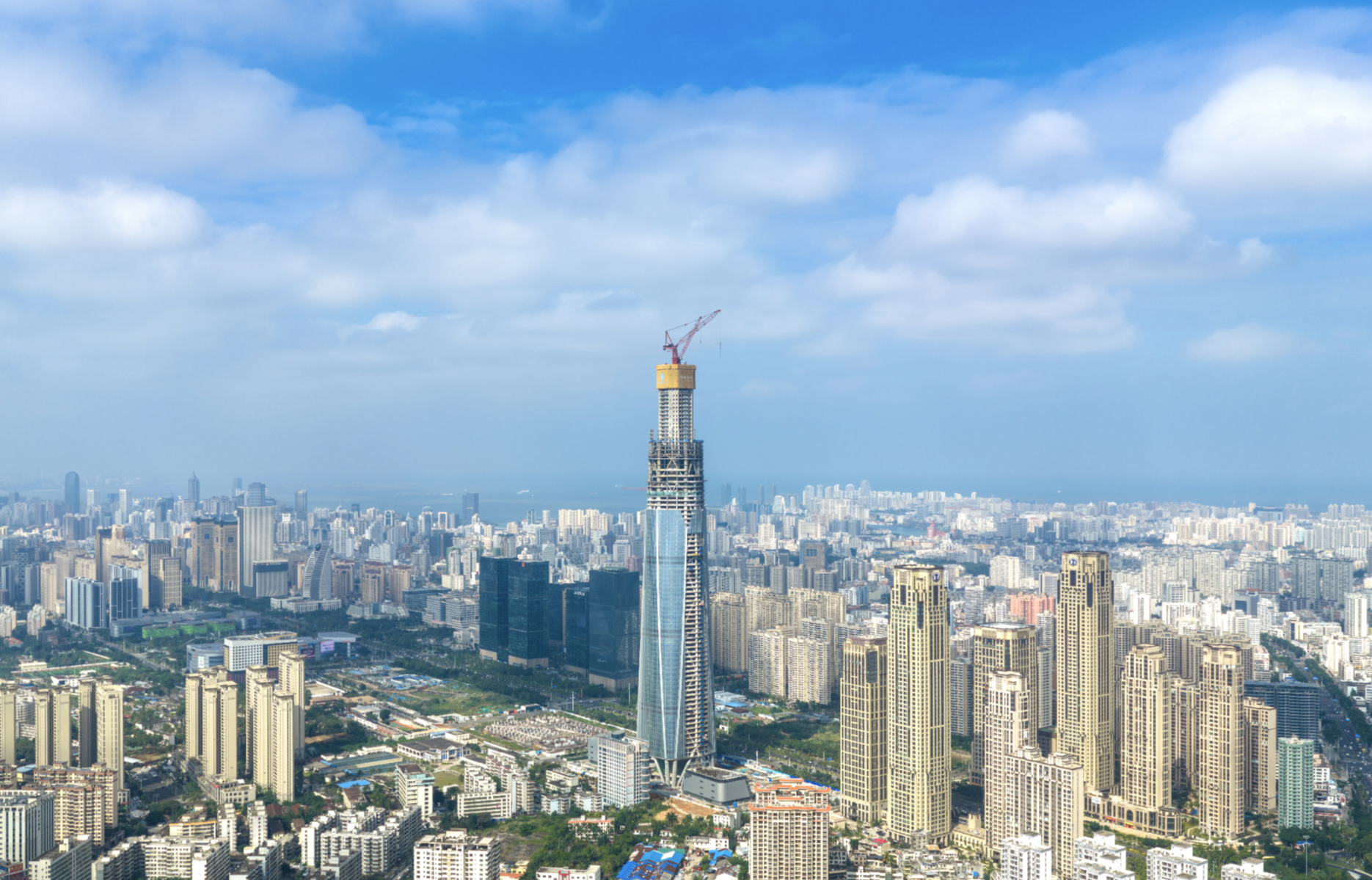 12月16日,在全岛封关运作进入最后冲刺阶段的关键时刻,由海南控股旗下海南机场投资建设、中建三局承建的“海南第一高楼”海南中心项目顺利完成塔楼核心筒结构封顶,项目核心结构正式成型。项目总高度将达428米,当前建设高度达402米,已经刷新海南城市物理天际线。