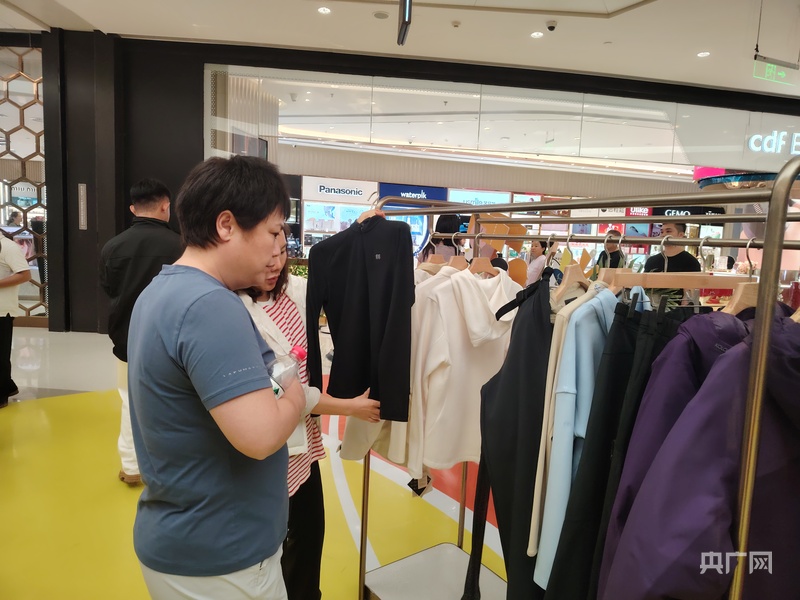 游客在免税城内挑选衣物(央广网记者 付美斌 摄)