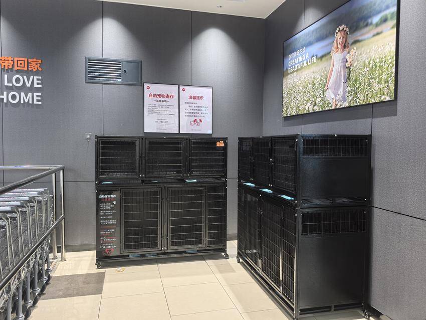 便民设施成为亮点:顾客休息区配置身高测量仪、血压仪等;特别设置宠物安置区,提升携宠购物体验。细节处更显用心——调味品货架配放大镜,连卷袋旁设置湿手器,散装食品区标注“一斤约多少个”,果切区按甜度标示食用顺序。