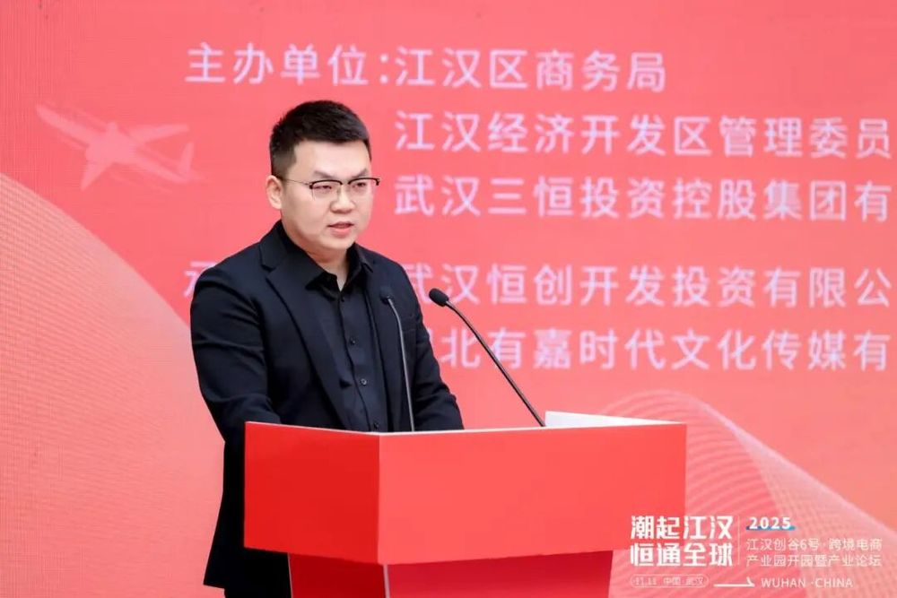 开园仪式上,江汉区政府副区长张隽波发表致辞,对产业园启幕表示热烈祝贺,他表示,江汉创谷6号跨境电商产业园的开园,是江汉区践行“产业集群化发展·生态协同化共赢”理念、打造中部跨境电商高地的具体实践。园区将锚定“聚合平台”“出海基地”“创新试验区”三大目标,依托国企资源整合金融、物流等全链条服务,助力“武汉造”“江汉品”走向全球,以数字技术提升贸易效率与安全。江汉区将持续强化政策赋能,做好全链条服务,推动政企、企企协同,让各类市场主体在江汉安心发展、聚力成长。