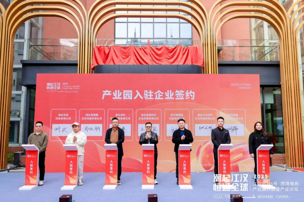 开园现场,多项合作同步落地:江汉跨境电商产业联盟正式启动,来自日本、希腊、印尼、英国等国的业务代表参与见证江汉跨境电商海外服务站揭牌成立,7家企业现场签约入驻。园区还聘请了6位涵盖国际发展、法律、人才等领域的跨境电商产业顾问,为园区发展提供智力支持。