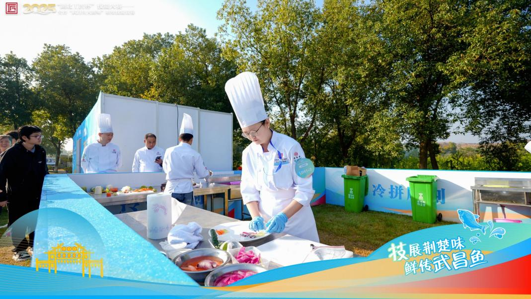 “技展荆楚味 鲜传武昌鱼”,11月15日,2025年“湖北工匠杯”技能大赛——全省“武昌鱼大厨师”职业技能竞赛在武汉市江夏区五里界街道开幕。
