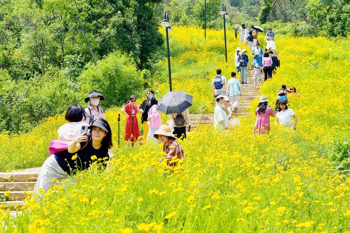 市民在江夏大花山游玩。 (舒运平 摄)