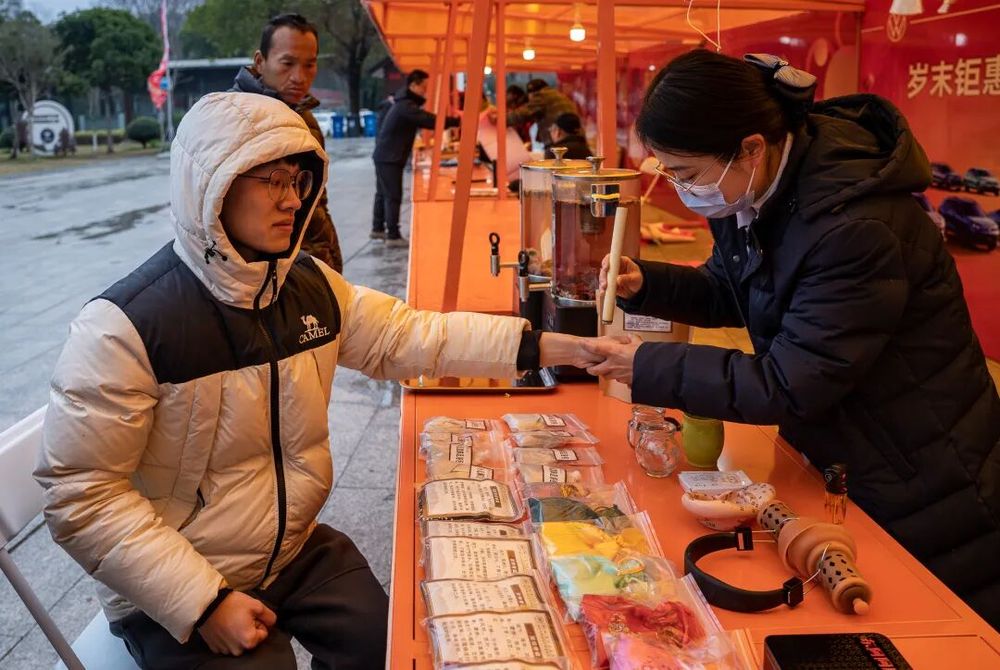 “这就是久违的沔阳味道,京果、麻枣一下子就勾起了浓浓的年味。”市民王瑞凯带着孩子细细品尝,只见沔阳头道茶、九味桌盒、沔阳三蒸等地道老沔阳美食精致摆盘,吸引市民忍不住拍照打卡。参展企业仙桃天诚国际大酒店负责人杜小艳介绍,通过预订年夜饭送传统美食,打造属于仙桃人的本土年味仪式感,“此系列很受欢迎,目前已经预订了80多桌”。
