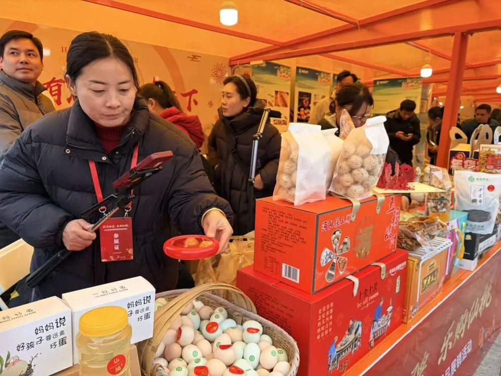 “集中亮相展销优质特色农产品,我们组织来自全市地理标志农产品、绿色食品、‘老字号’特色农产品龙头生产企业、合作社等优质特色农产品主体70余家,产品130余个产品参展,市民可安心采买年货。”市农业农村局展位负责人邓春梅介绍。