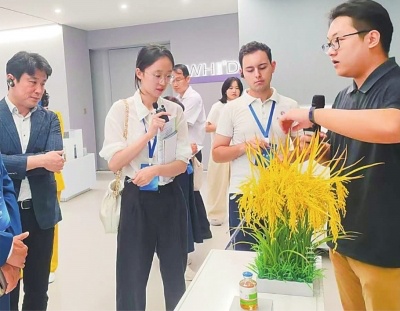 在武汉产业创新发展研究院,中外嘉宾了解“稻米造血”技术。周思彤摄