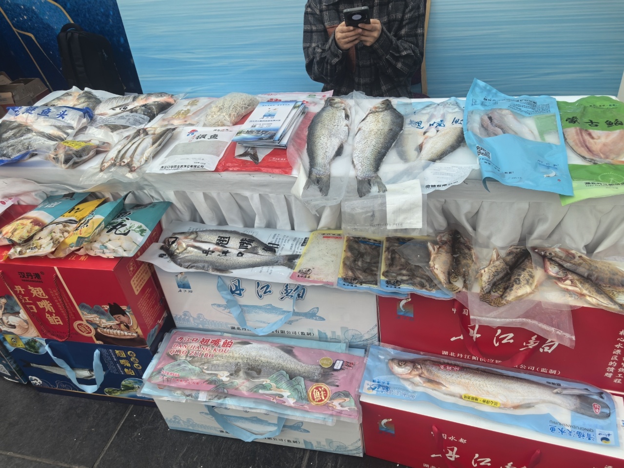 “十堰珍品 京彩相约——2026南水北调水源地·十堰市绿色农产品展销暨‘丹江鲌’品牌推介会”现场展出的特色农产品(央广网发 北京十堰企业商会供图)