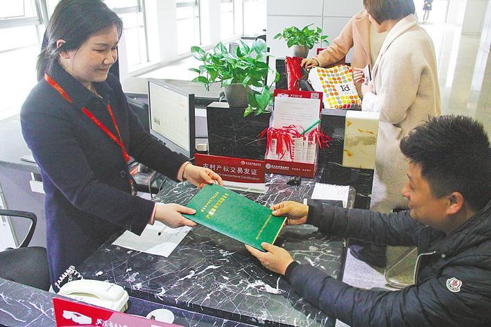 武汉农交所工作人员发放产权证书。 (受访单位供图)