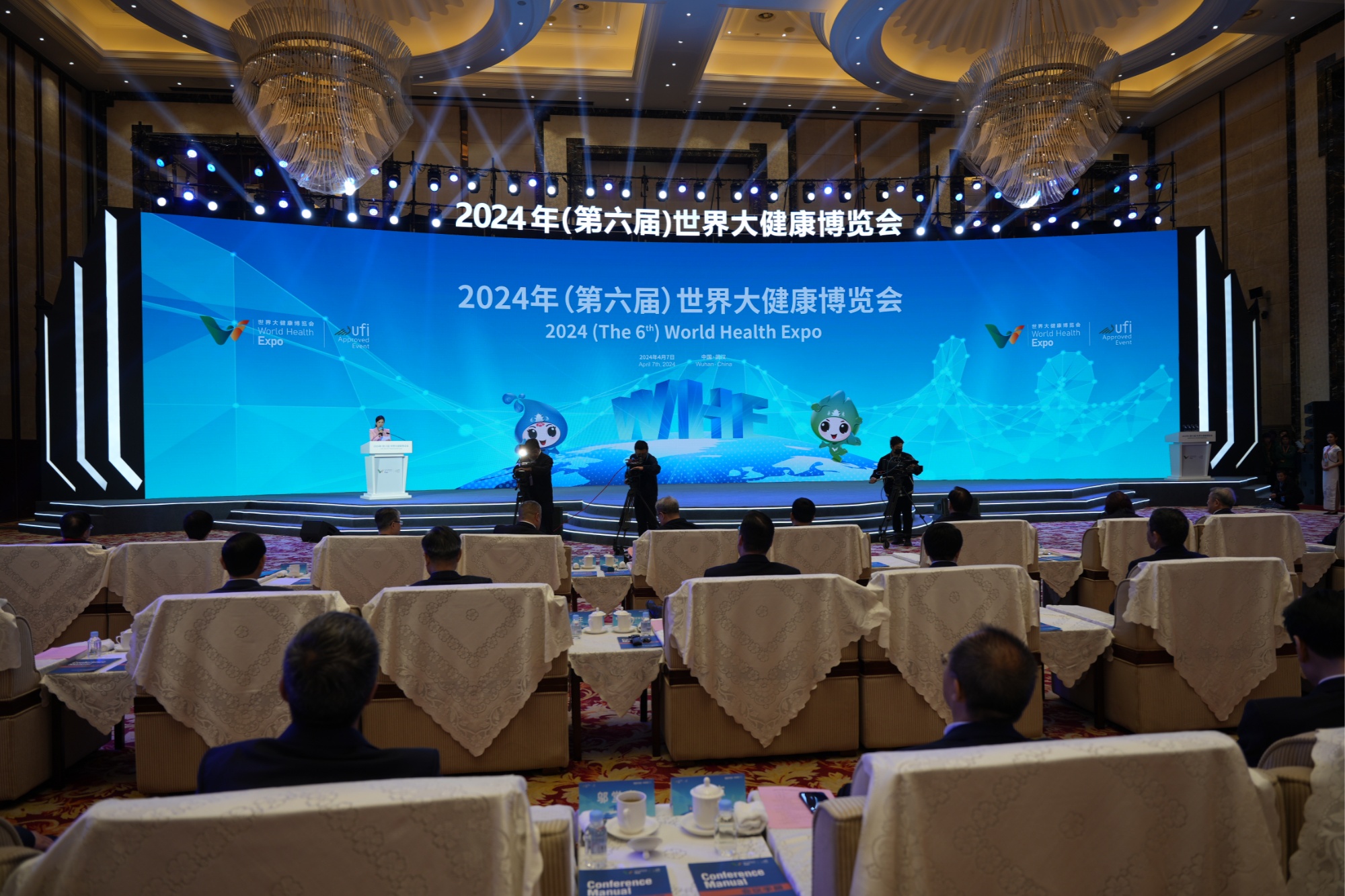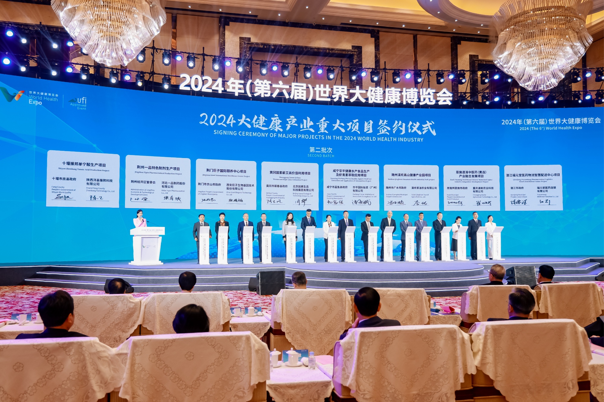 央广网武汉4月7日消息 4月7日,2024年(第六届)世界大健康博览会在武汉开幕,吸引了海内外600多位重要嘉宾参会,千余家知名企业、单位参展,16个重点合作项目在开幕式上集中签约。