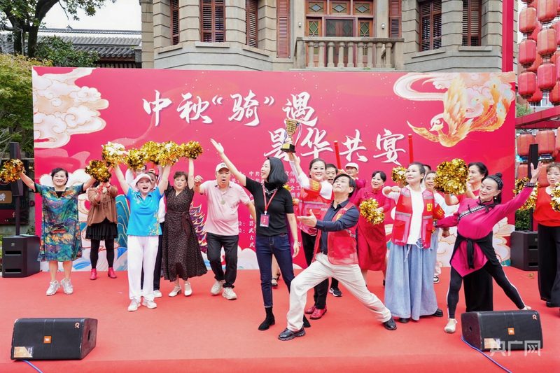 央广网武汉9月27日消息(记者左洋)9月27日,武汉市武昌区举办“我们的节日·中秋”文明实践主题活动。活动以“中秋‘骑’遇 昙华共宴”为主题,以“低碳骑行+圆桌宴”的创新形式,汇聚辖区居民、商户、党员、新就业群体、金婚夫妻等多元力量,共享低碳骑行,共烹美味佳肴,共赏非遗文化、共话邻里温情,弘扬中华优秀传统文化,传播时代文明新风。