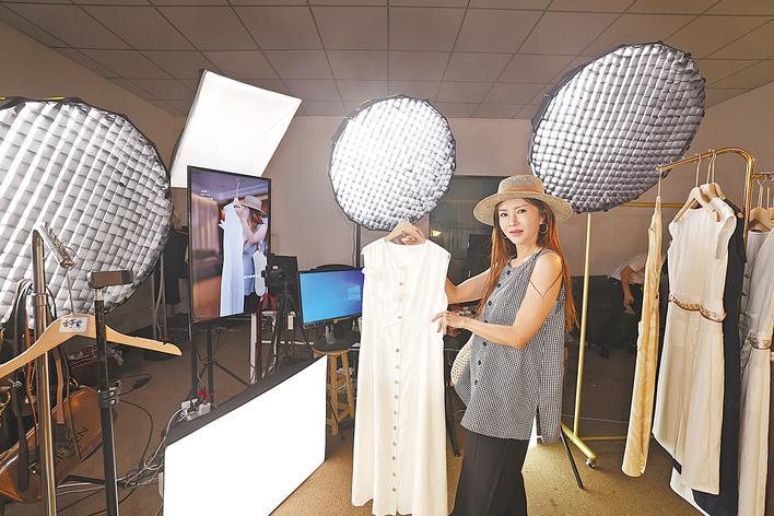 天门服装电商主播进行直播带货。 (湖北日报通讯员 刘银斌 摄)