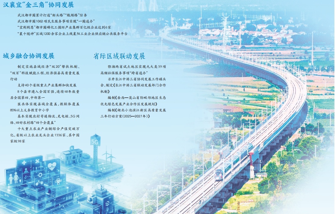 高铁在湖北画圆,也连接全国铁路网络。湖北的发展也是如此,在实现自身区域协同发展的同时,也在跨省联动、优势互补。