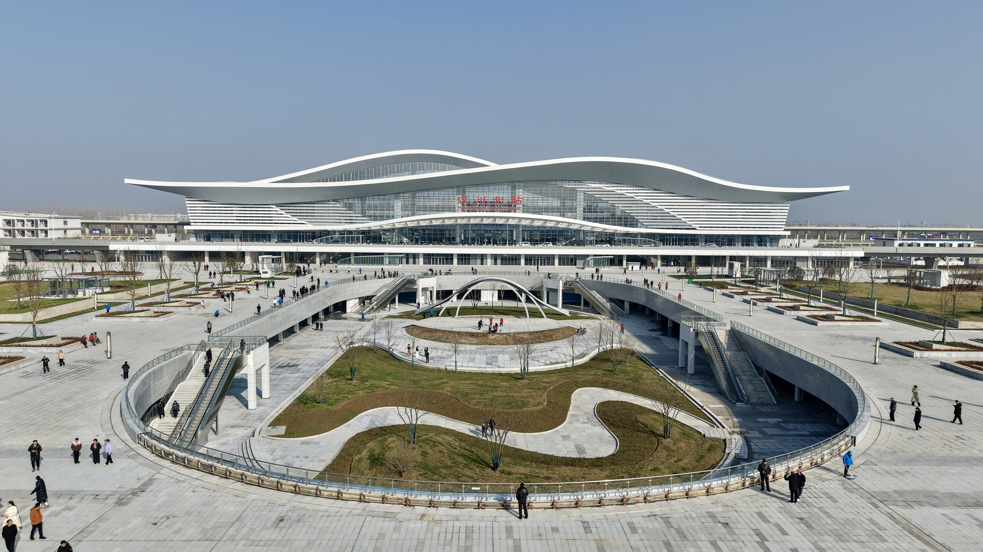 为方便旅客高效出行,实现“快进快出、人车分流”,车站配套交通系统经过精心设计,不同出行方式的旅客均可享受到便捷指引。社会车辆可经主干道驶入站前大道,通过专属高架匝道桥直达落客平台,实现“即停即走”快速进站;若需长时间停车,可进入容量充足的地下停车场。