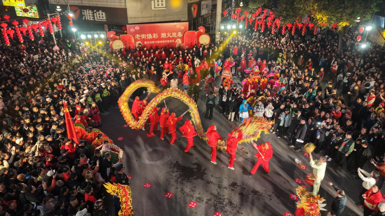 2月14日18时30分,“点亮汉江·风和日丽”2026年汉川市迎新春无人机烟花秀表演璀璨启幕。非遗踩街唤醒老街记忆,千架无人机以天幕为卷书写水乡浪漫,环保烟花在汉江夜空泼墨锦绣前程。2小时沉浸式视听盛宴,吸引线上线下百万市民共襄盛举,汉川的城市年味与文化自信在光影交织中向八方来客深情告白。