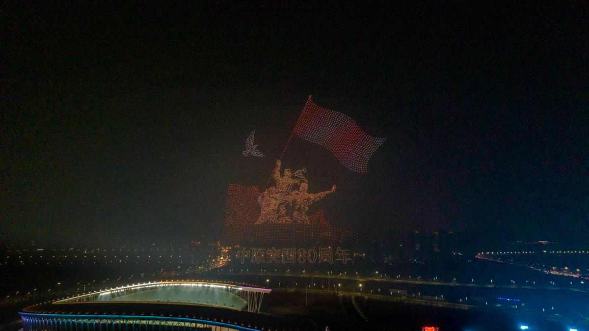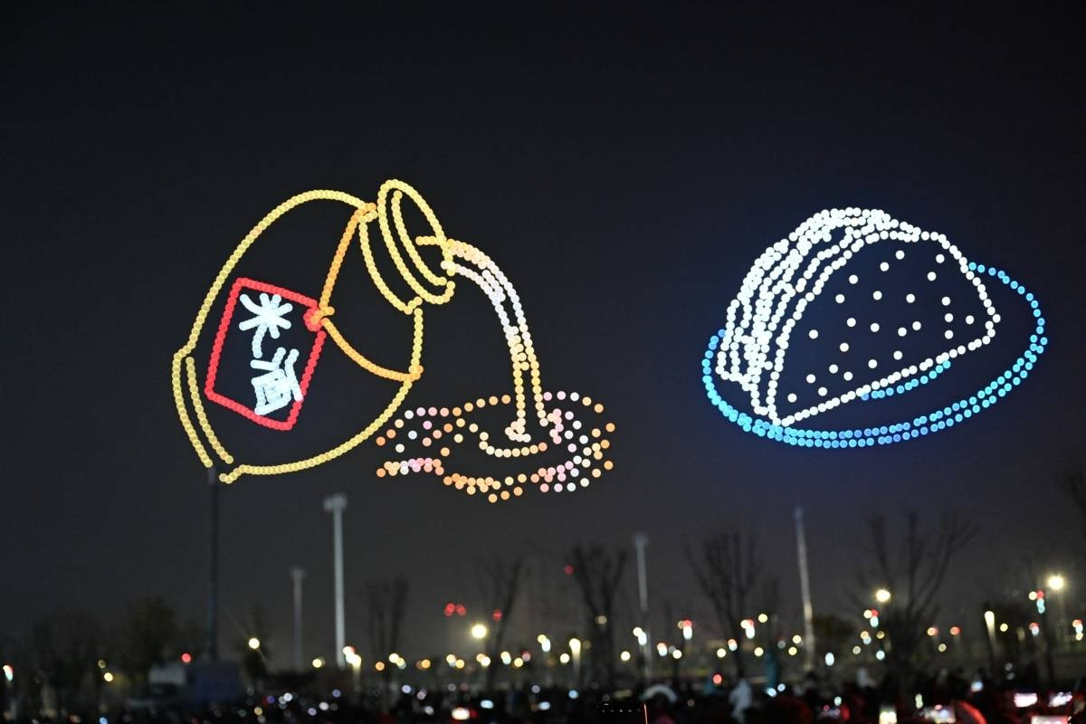 “欢孝过大年”——6000架无人机点亮孝感夜空。(湖北日报通讯员 李晨 摄)
