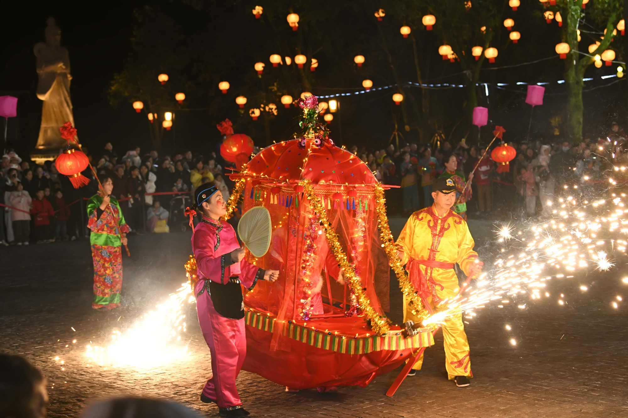 3月2日,农历正月十四晚,一场充满古风古韵的“三元庙会”暨传统民俗文化展演活动,在咸安区太乙天沐温泉度假区精彩上演,通过实景演绎与传统市集的巧妙融合,为游客营造出仿佛置身于宋代元宵佳节的奇妙体验。据悉,此次“三元庙会”活动时间为3月2日至3日,持续两天。