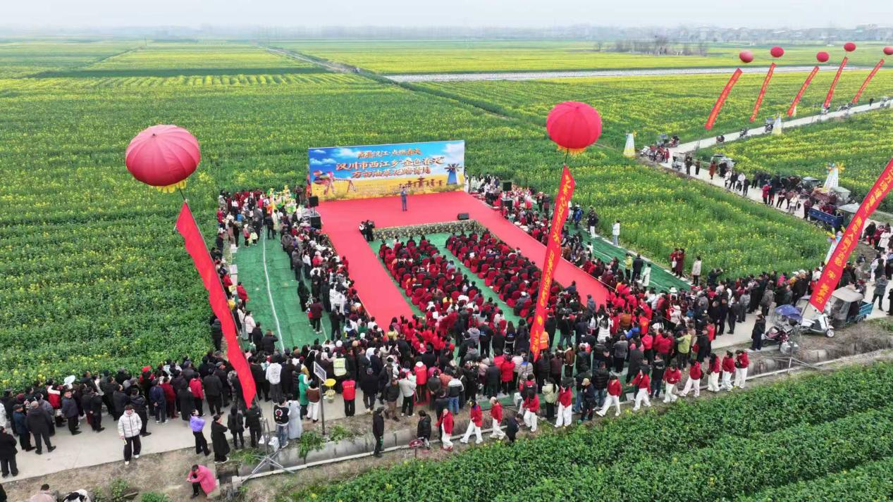 一朵油菜花,串起一条完整产业链。近年来,西江乡依托高标准农田建设,大力推进“小田变大田”,油菜种植面积稳定在3万亩以上。通过“党支部+合作社+农民”模式,推广良种良法,免费提供种子化肥,农技人员下沉指导,油菜种植逐步走向规模化、集约化、精细化。当地着力延伸产业链,打造“春赏花、夏收籽、秋榨油、冬养地”的绿色循环发展模式,以赏花经济带动人气,以油菜籽加工提升效益,以秸秆还田实现生态循环。花海旁的农特市集上,风干鲫鱼、西江毛豆、虾稻米、蜂蜜等特色产品备受青睐,真正实现了土地里既长庄稼,又长风景、长产业、长增收。
