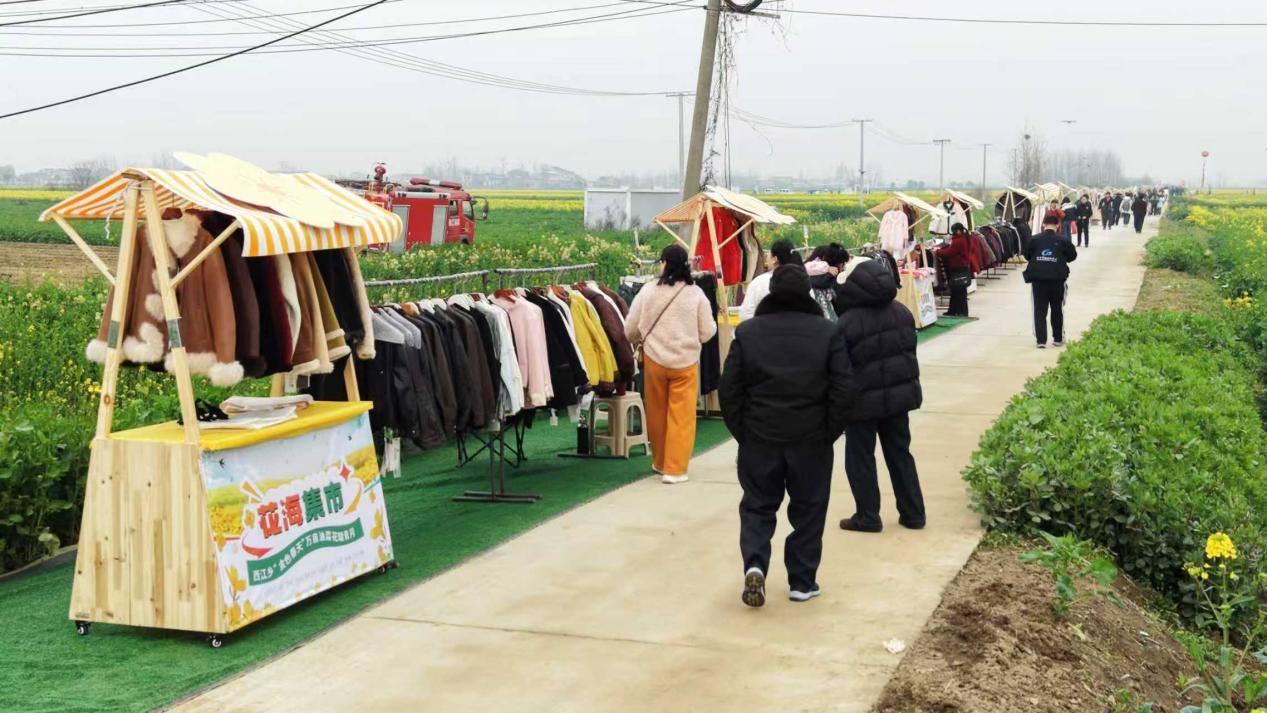 花海旁的农特市集受到游客青睐(央广网发 汉川市委宣传部供图)
