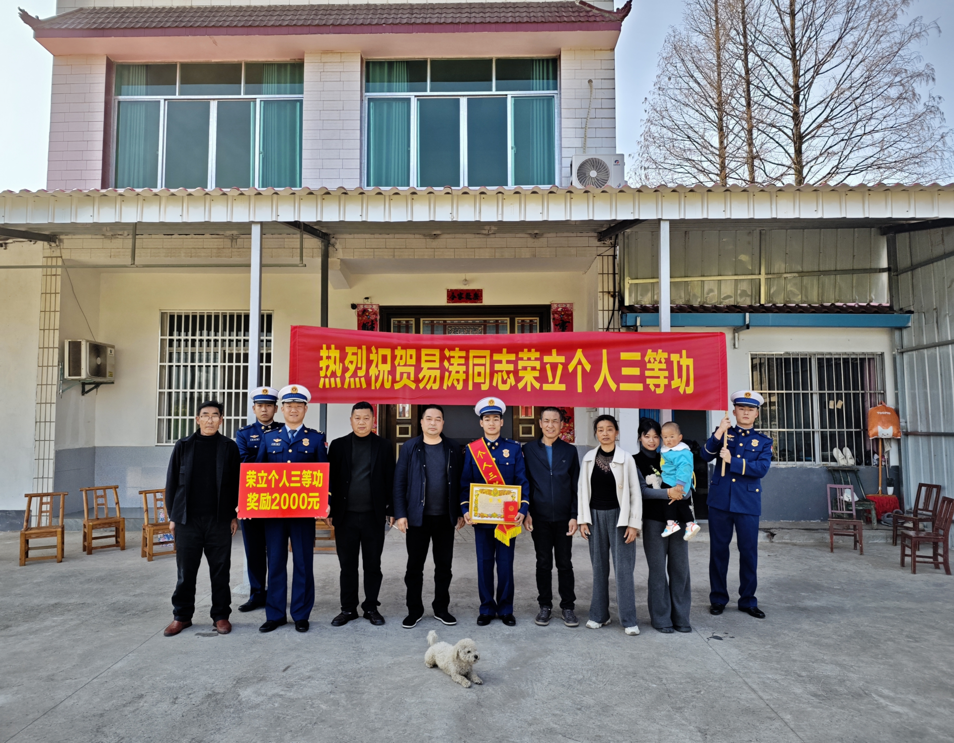 为充分发挥先进典型示范引领作用,切实增强指战员职业荣誉感,近日,荆州公安县消防救援大队开展“送奖到家”活动。