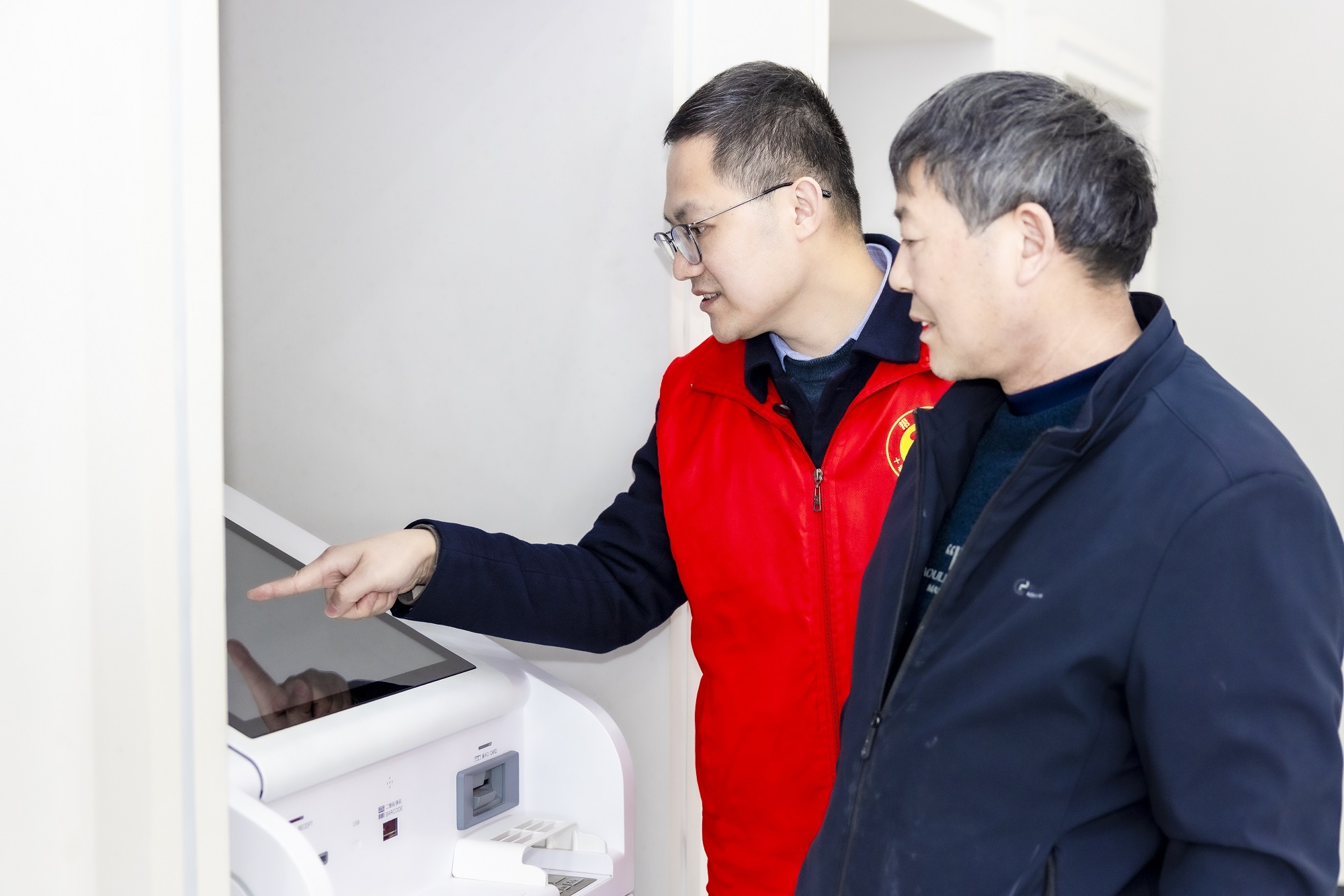 十堰经开区“红马甲”政务服务志愿服务队指导办事群众使用自助办理系统查询社保缴费情况(央广网发 十堰经开区融媒体中心供图)