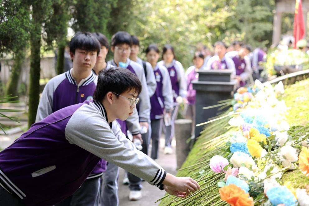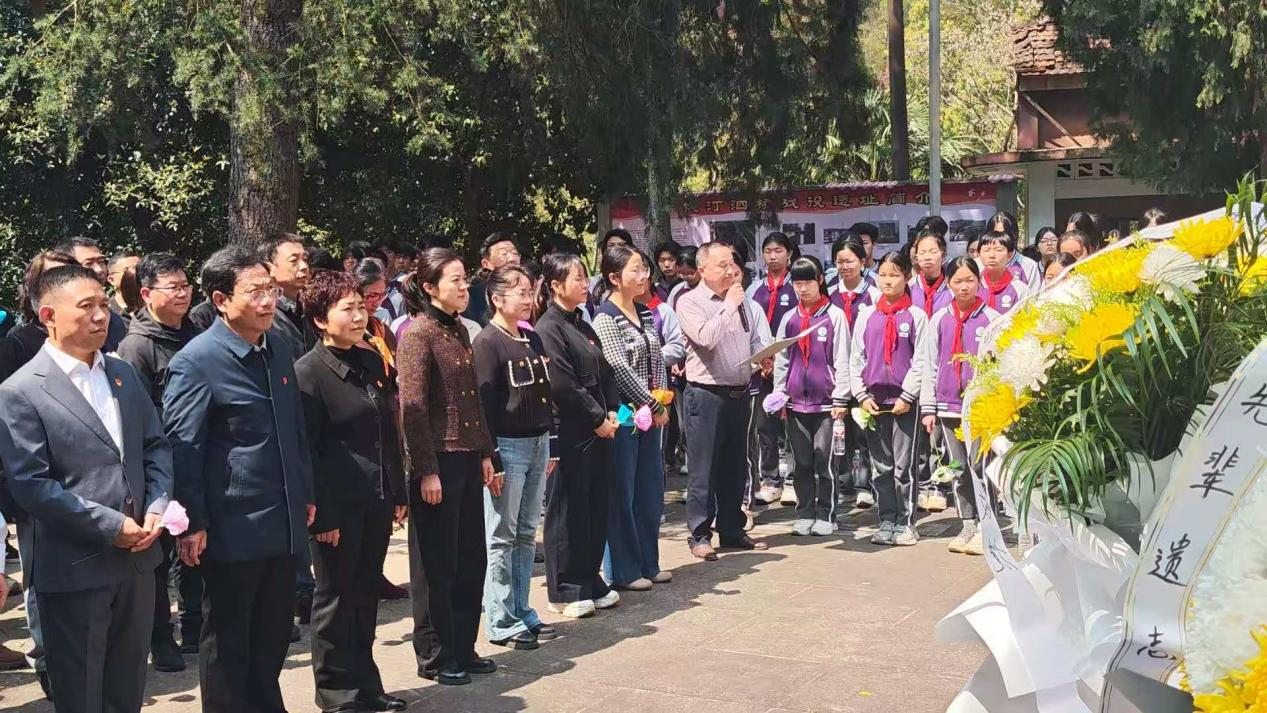 “缅怀先烈守初心 铁军精神砺少年”清明祭英烈活动(央广网发 咸安区委宣传部供图)