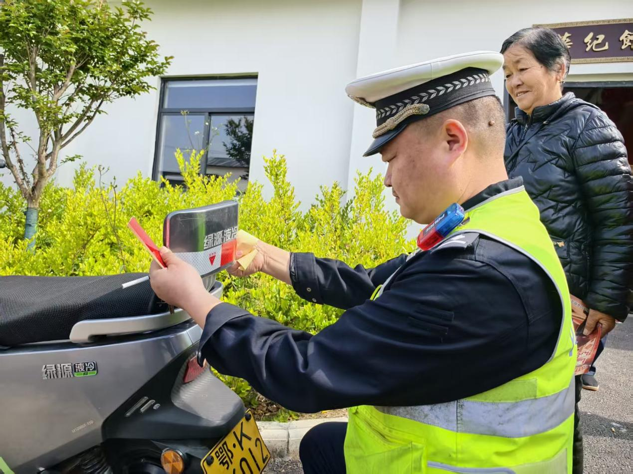 有奖互动环节气氛热烈,民警以问答形式普及安全知识,向积极参与者赠送安全头盔、反光贴等“安全礼包”,还手把手演示头盔正确佩戴方法,为村民车辆粘贴反光标识,提升夜间通行安全性,获得村民一致好评。