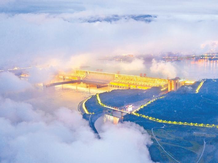 10月20日,俯瞰三峡大坝及三峡电站输电设施。据三峡集团长江电力消息,截至10月17日,世界最大清洁能源走廊(长江干流乌东德、白鹤滩、溪洛渡、向家坝、三峡和葛洲坝六座大型电站)累计发电量突破4万亿千瓦时,多年累计节水增发超1680亿千瓦时,充分彰显了“一滴水发六次电”的核心能力,为保障国家能源安全、促进能源绿色低碳转型作出重要贡献。(视界网 郑坤 摄)