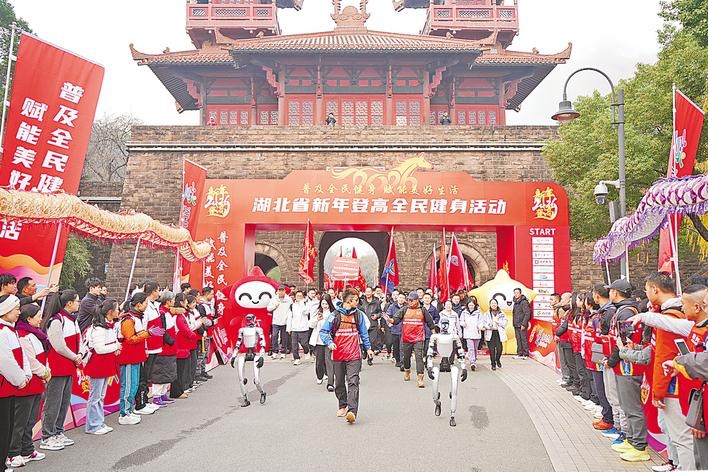 12月30日,第18届湖北省新年登高全民健身活动在武汉东湖磨山风景区举行。两台人形机器人化身“活力陪走员”,成为现场瞩目的科技明星。