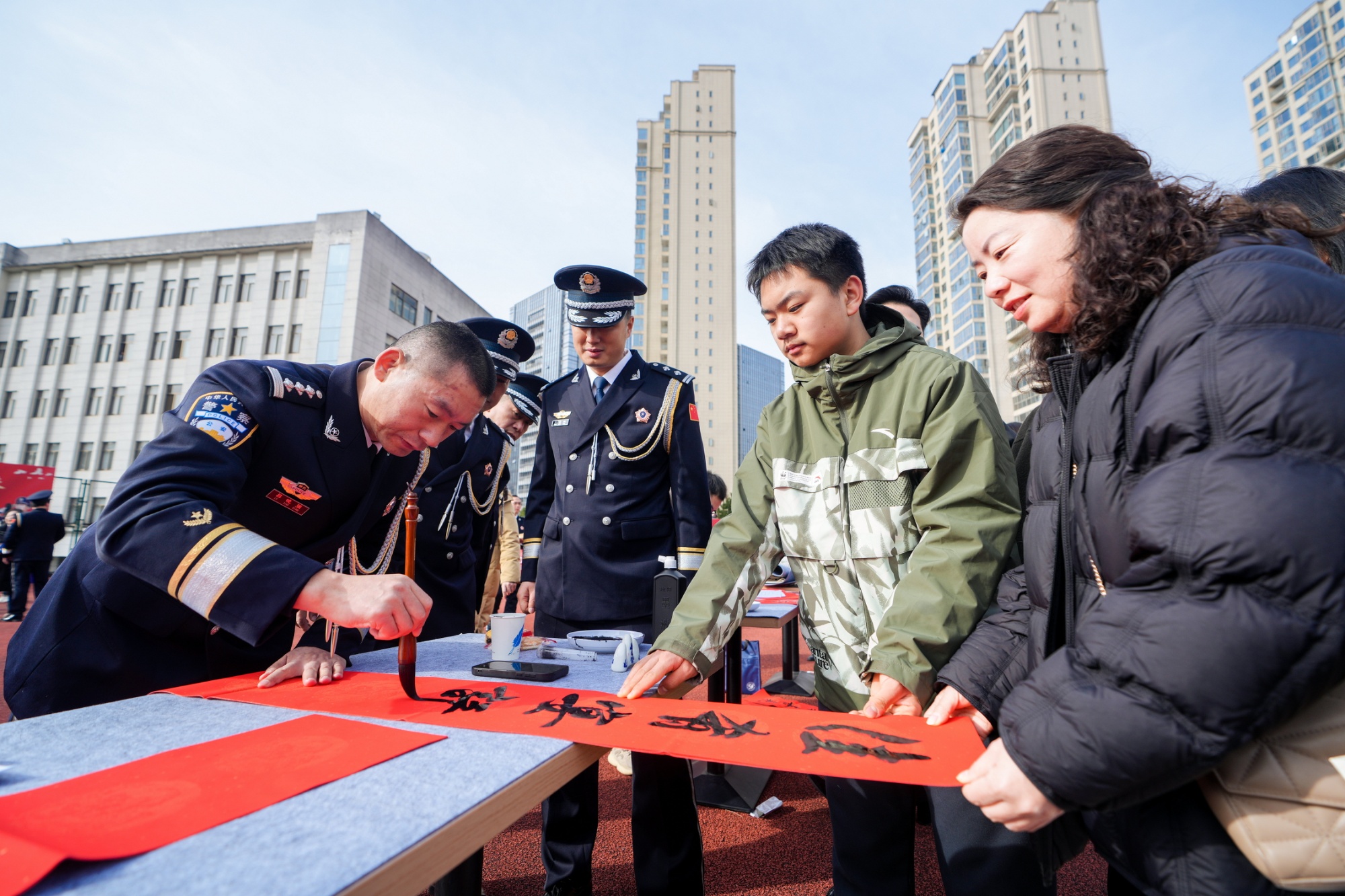 警营书法家现场挥毫送春联(央广网发 十堰市公安局供图)