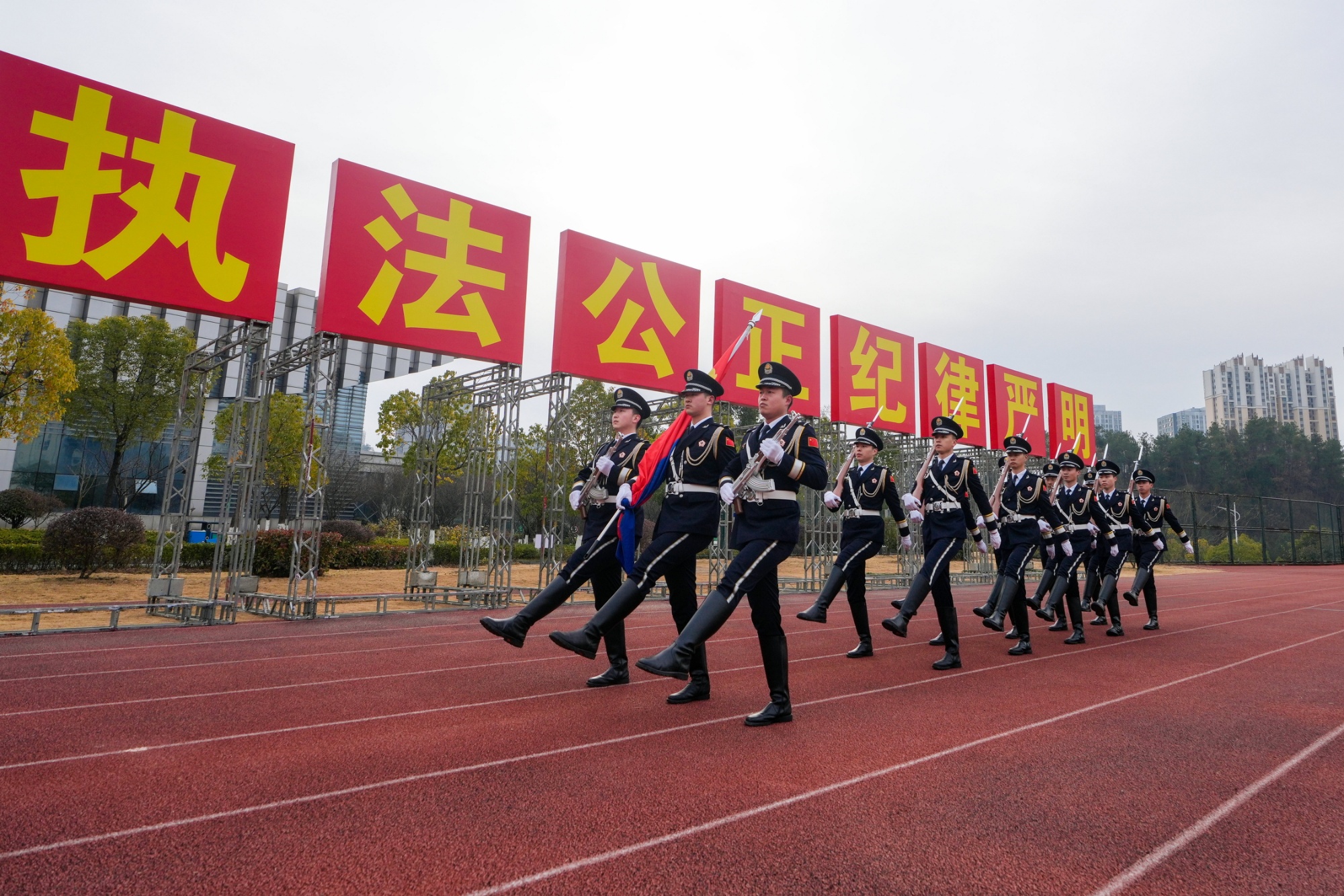 十堰市公安局举行升警旗仪式,庆祝第六个中国人民警察节(央广网发 十堰市公安局供图)