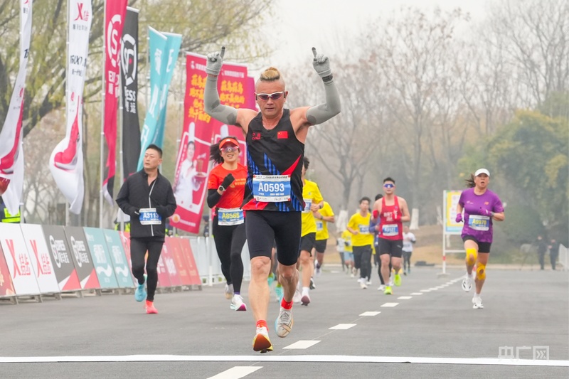 2026武汉青山迎春跑选手终点冲刺(央广网记者邓子依 摄)