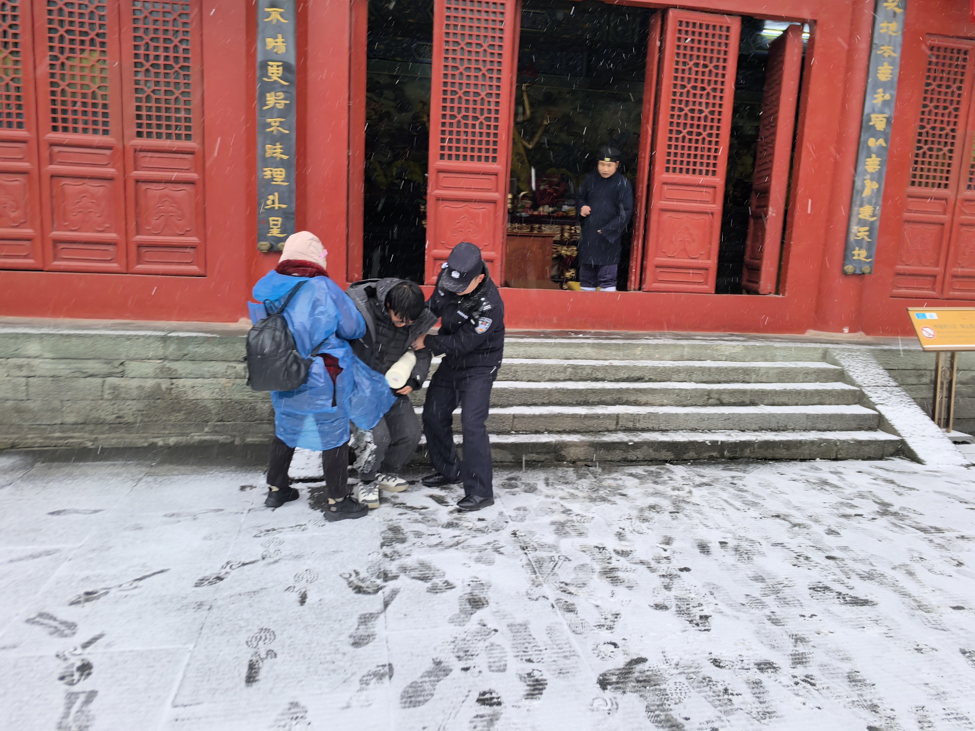 1月20日,十堰市公安局联合多部门织密安全防护网,用24小时不间断值守与暖心服务保障武当山景区游客安全(央广网发 十堰市公安局供图)