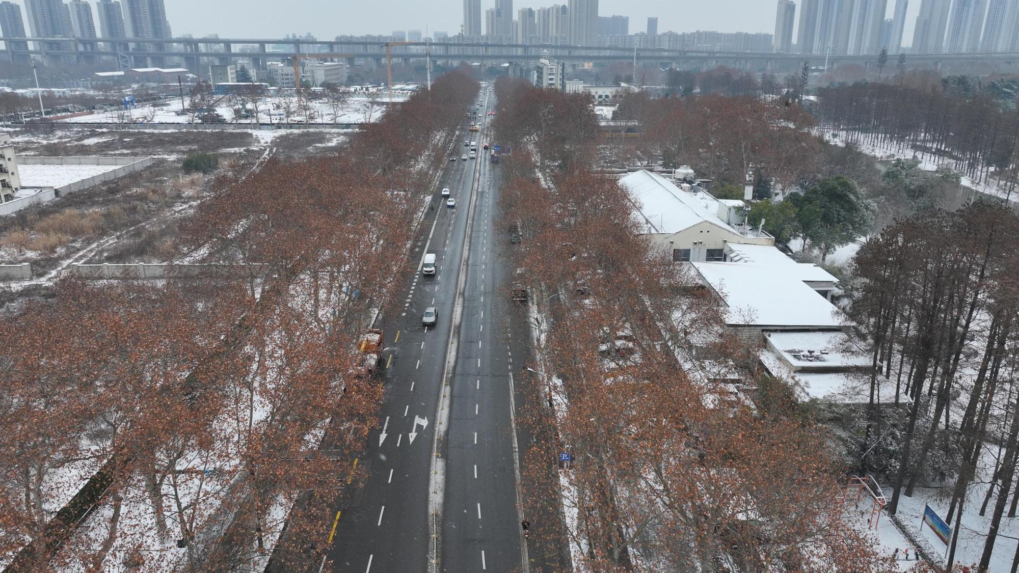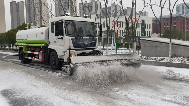 十堰市张湾区综合行政执法局工作人员正在城市主干道除雪(央广网发 张湾区融媒体中心供图)