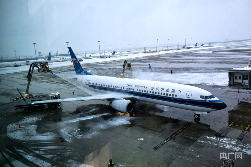 1月20日,多轮次、高强度场道除冰后,武汉天河机场首班航班进出港正常(央广网发 武汉天河机场供图)