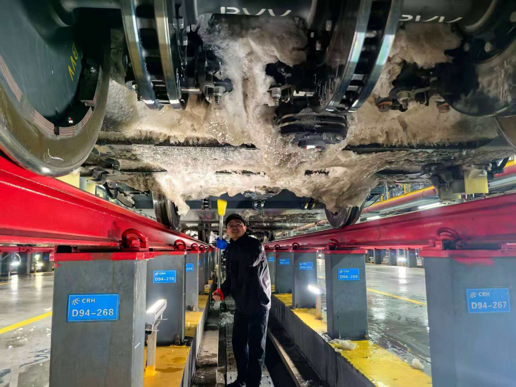 武汉动车段“以雪为令”,组建多支党团员突击队,全面开展除雪打冰、道岔融雪、设备保温等作业,为动车组安全开行筑牢“防护墙”(央广网发 中国铁路武汉局集团有限公司供图)