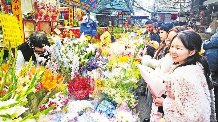 1月17日,武汉市江汉区一家花卉市场,消费者正在挑选心仪的年宵花,为家中增添节日气氛。春节临近,武汉市各鲜花市场迎来销售旺季。