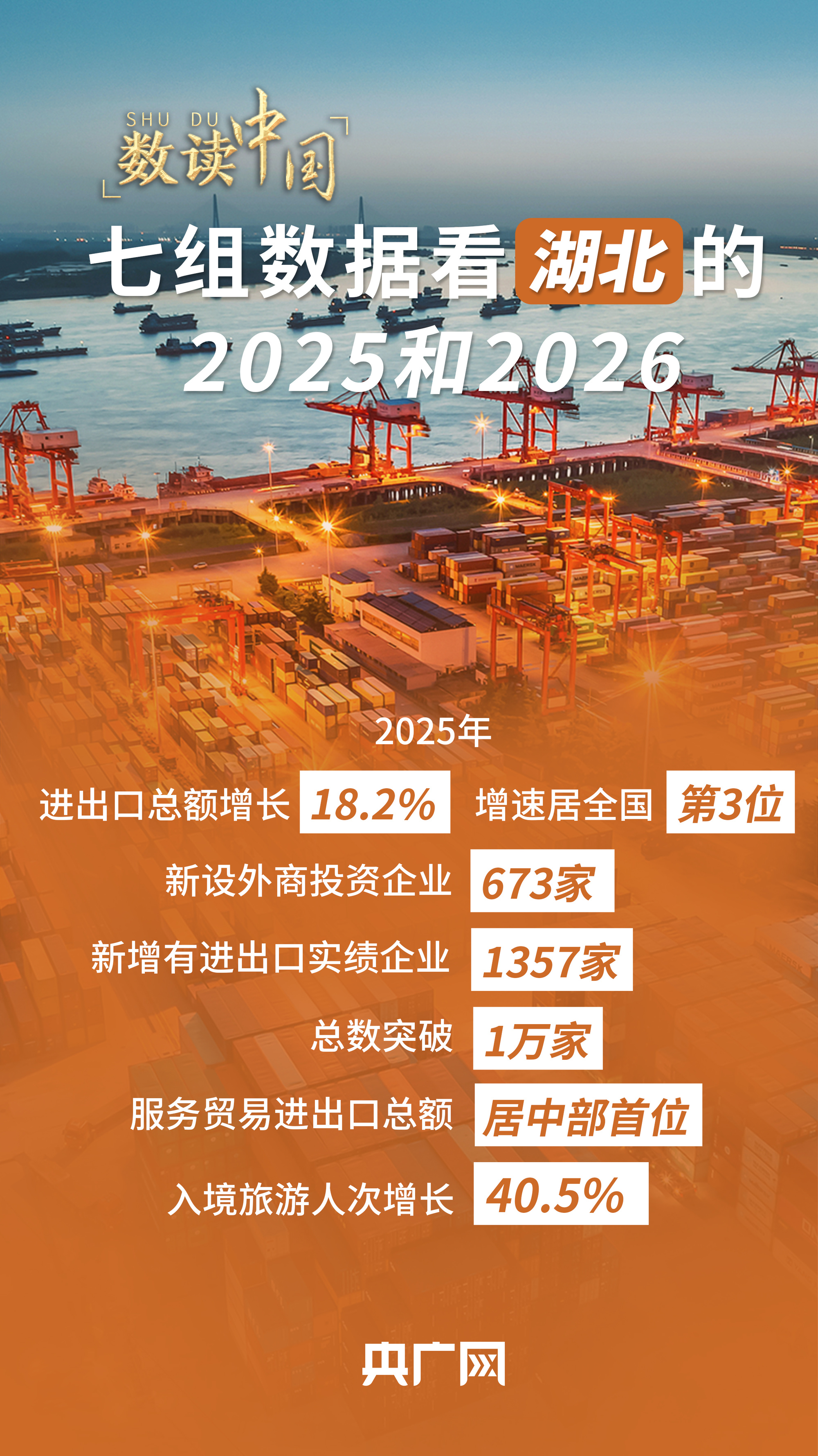 央广网精选湖北省政府工作报告中的七组关键数据,带您回望湖北2025年的成就,展望2026年的崭新征程。