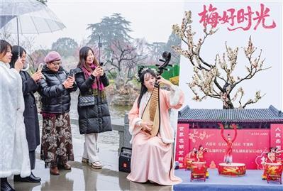在东湖梅园内,科技与梅景的融合成为今春最大亮点。游客通过扫码即可参与“AI时光滤镜相机”互动,生成专属梅园复古照片,与首届东湖梅展隔空重逢。